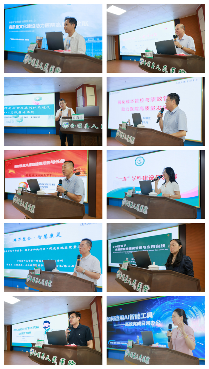 本次培训特邀区内外知名医疗专家授课,课程内容涵盖专题党课、AI 智能办公、DRG 支付改革、学科建设、医院精细化管理等热点问题,精准覆盖领导干部履职所需的能力维度,通过专题讲座、案例研讨、互动交流等多元形式,为学员们搭建起一座能力“充电站”。学员们普遍反映,培训课堂干货满满,受益匪浅,真正帮助干部们做到学以致用、以学促干。
