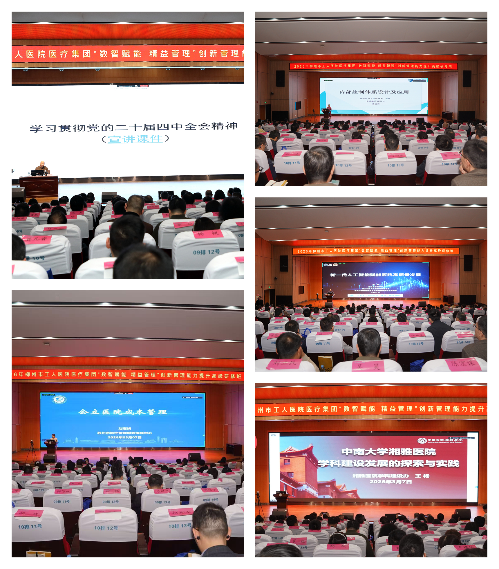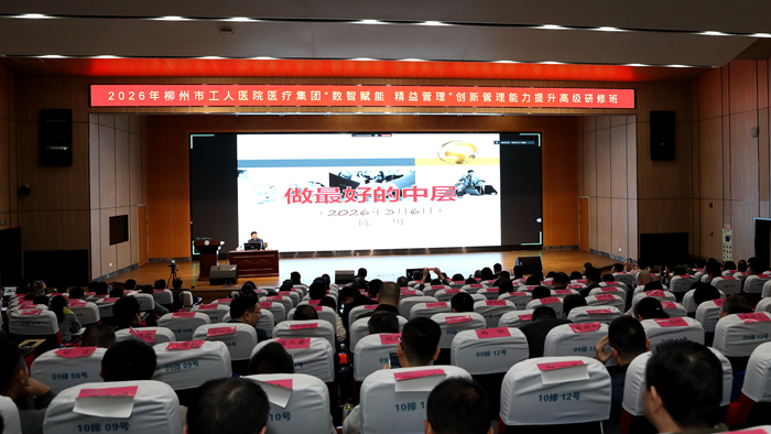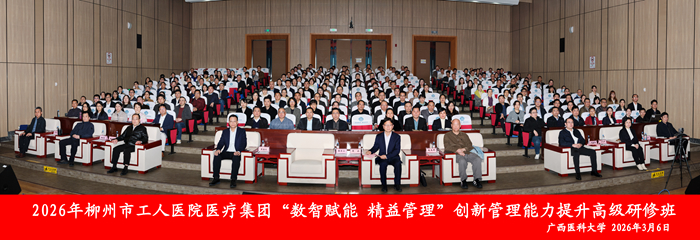 3月6日至7日,广西医科大学继续教育学院在柳州市顺利举办2026年柳州市工人医院医疗集团“数智赋能 精益管理”创新管理能力提升研修班。柳州市工人医院党委书记黎荣山,柳州市工人医院医疗集团理事长、院长黄海欣,广西医科大学继续教育学院院长周波等出席开班仪式并致辞。研修班以“线上+线下”融合模式开展,共700余人参加。